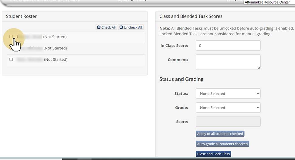 3. Check Mark next to the student's name |